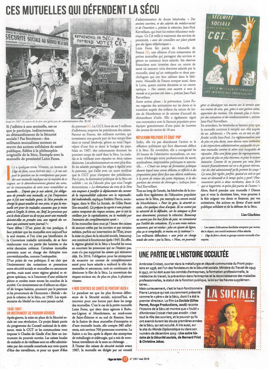 L'Age de Faire, journal citoyen qui témoigne des expériences alternatives en matière de réappropriation de l’économie, de création de lien social, d’écologie et d’engagement citoyen publie dans son numéro de mai un article qui rappelle l'histoire des mutuelles et leurs missions.